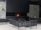 Возможность в любой момент приготовить что-нибудь на углях в мангале. Или любоваться живым огнем. И о безопасности тоже позаботились, очаговую часть оснастили подъемным защитным экраном с искрозащитной сеткой.