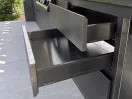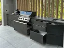 Полностью автономный комплекс с местами хранения всей необходимой посуды и аксесуаров. Количество ящиков/полок, открывание дверок спроектировано с учётом предпочтения и пожелания заказчика.