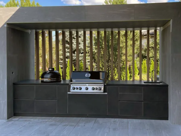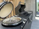 Комплекс имеет 2-е огневые точки: керамический гриль Monolith (модель Classic Pro) и газовый гриль Napoleon ( модель Rogue 625).