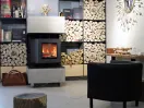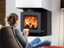 Камин с поворотным механизмом, модель Brunner Drehfeuer 33. Управляется с пульта. Поворотная конструкция топки изготовлена из чугуна. У модели Drehfeuer 33 неповторимый механизм закрывания дверки без уплотнительных шнуров.