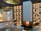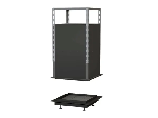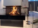 Каминная топка открытого типа, островная, без дверцы. Оснащена подъемной искрозащитной сеткой.