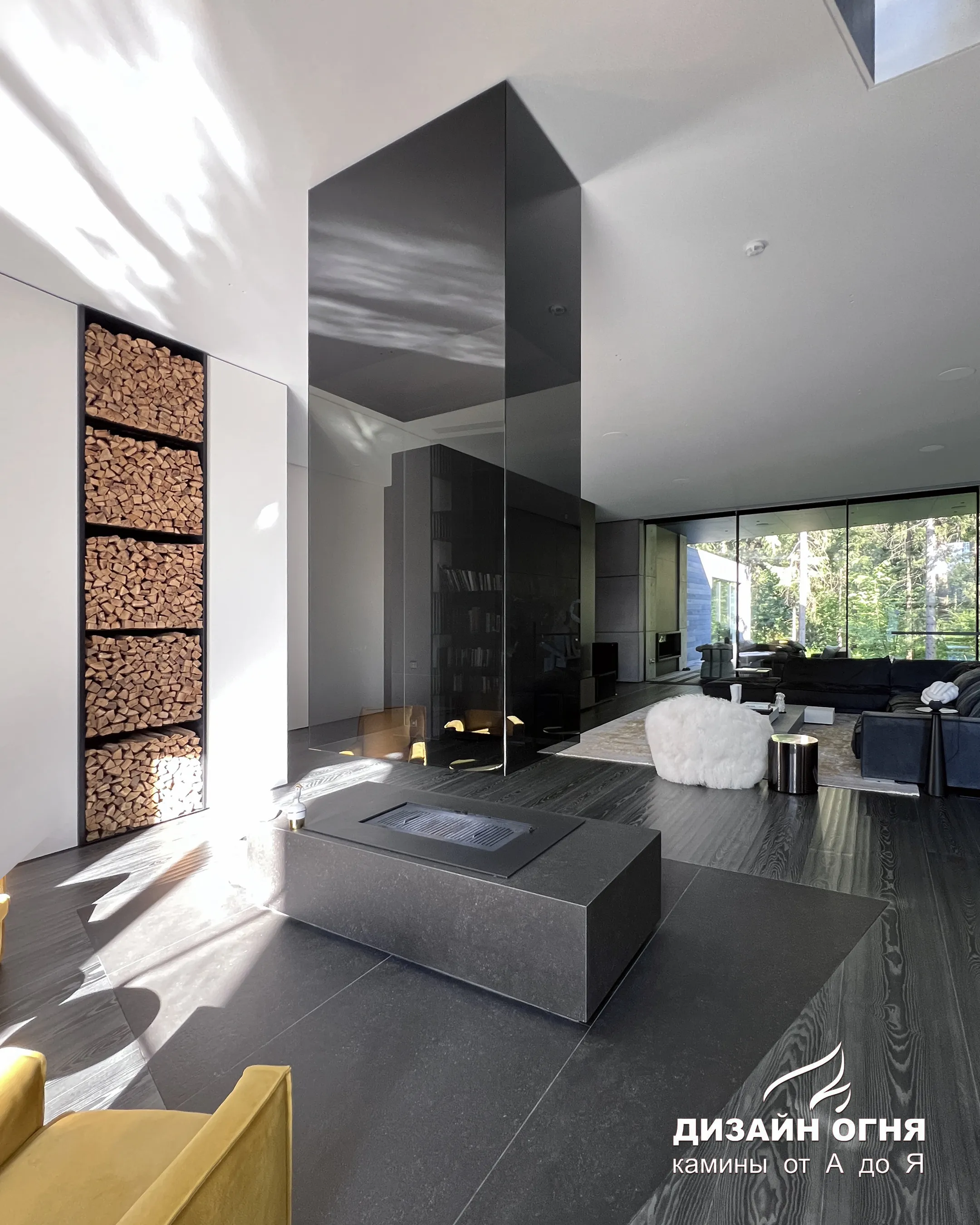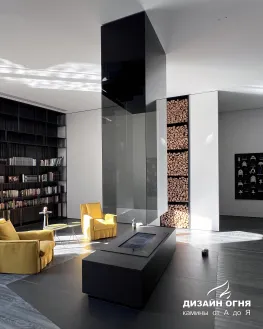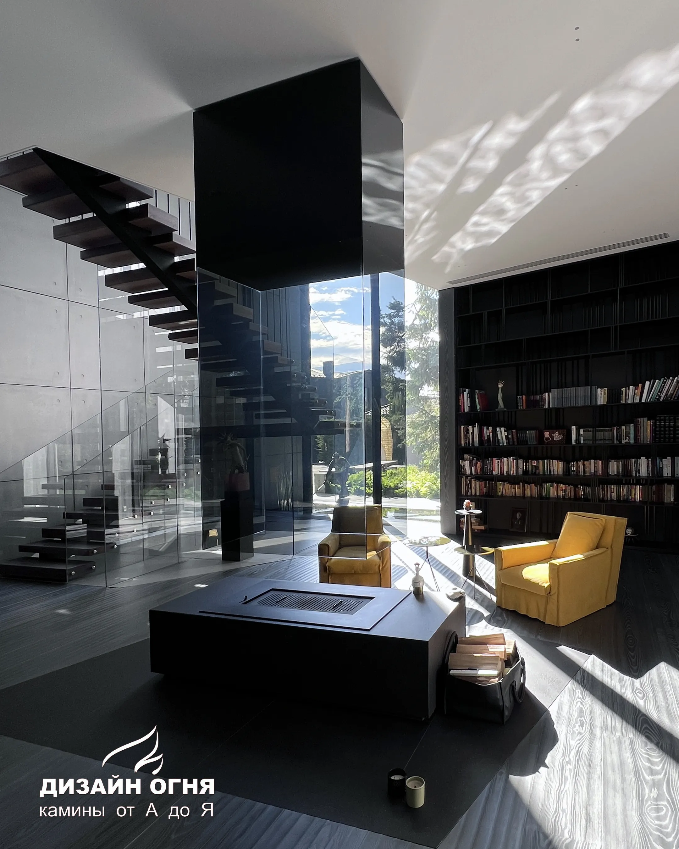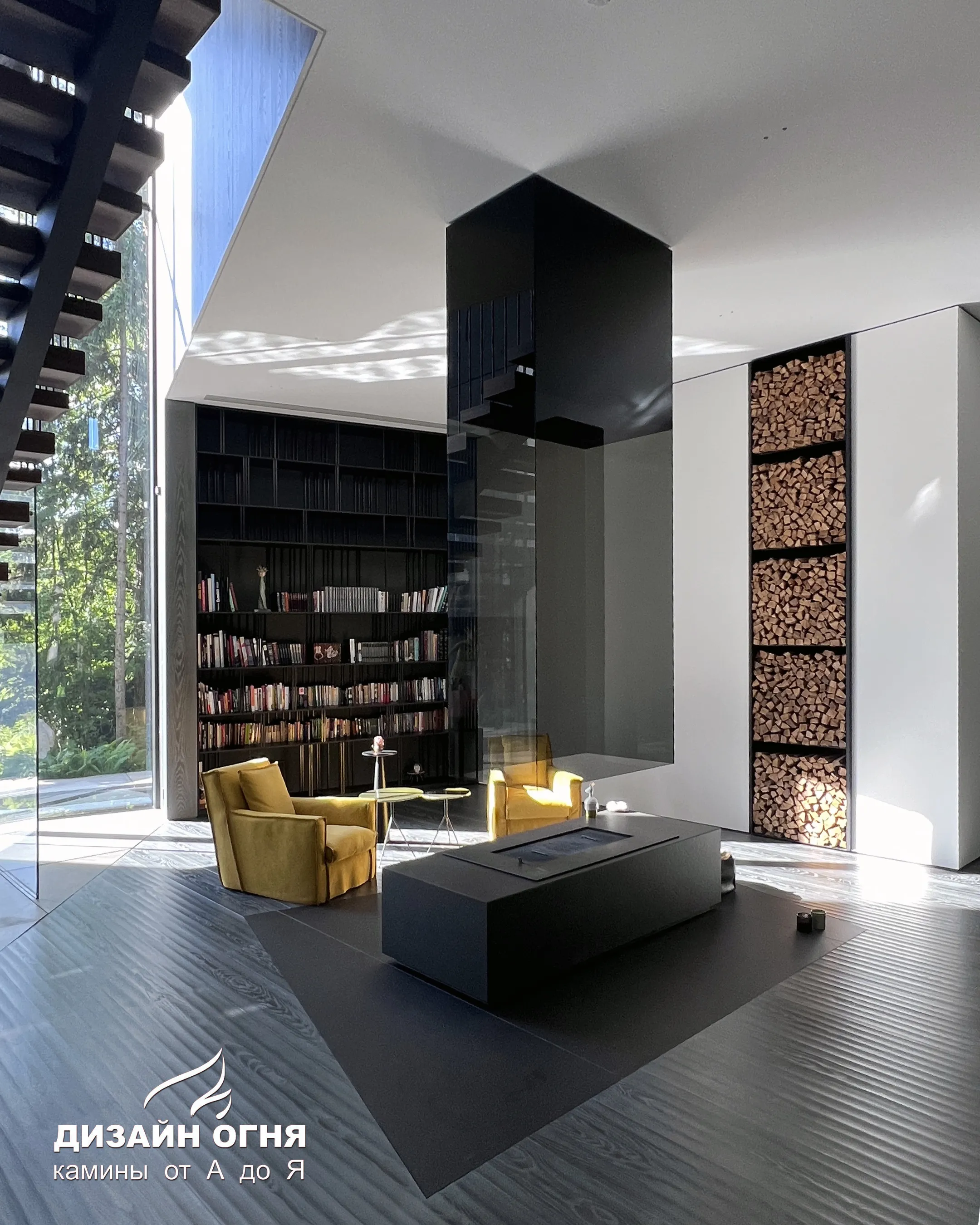 Современная модель камина от голландского дизайнера Гарри Болей (Boley).Подвесной архитектурный элемент пространства. Место притяжения – ядро дома.