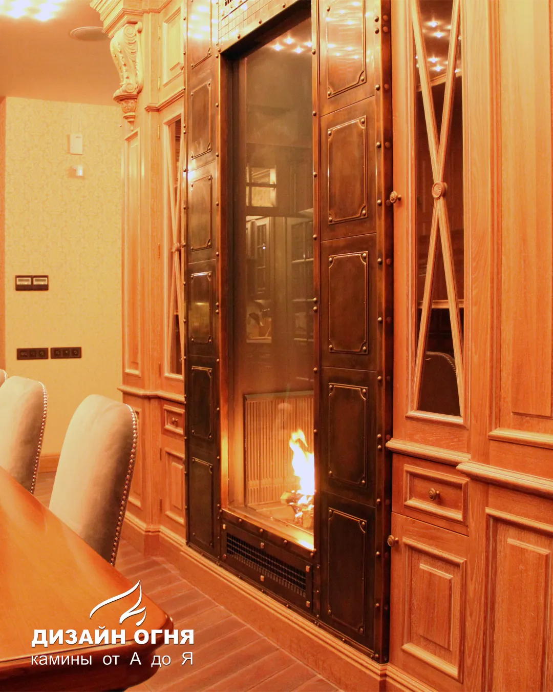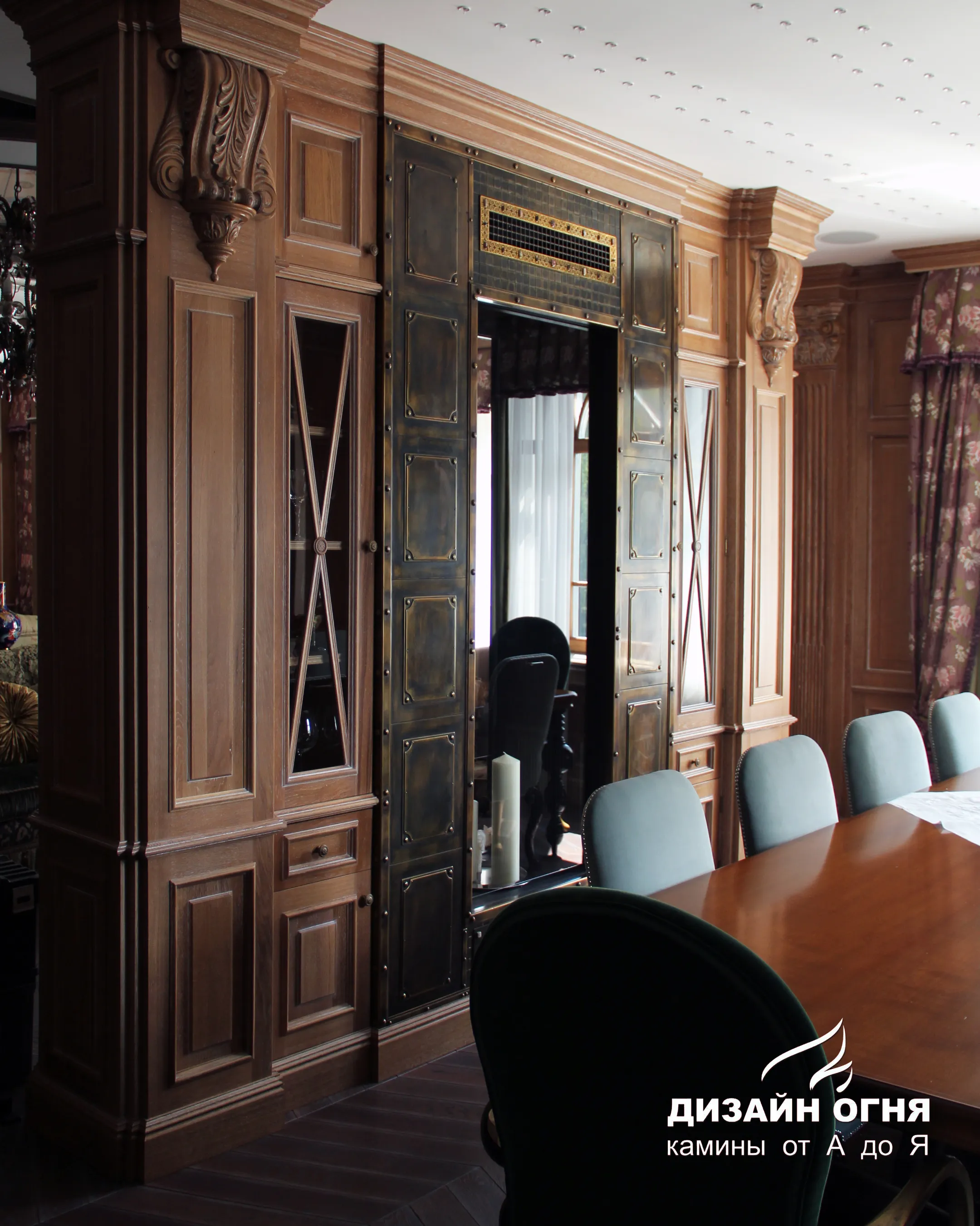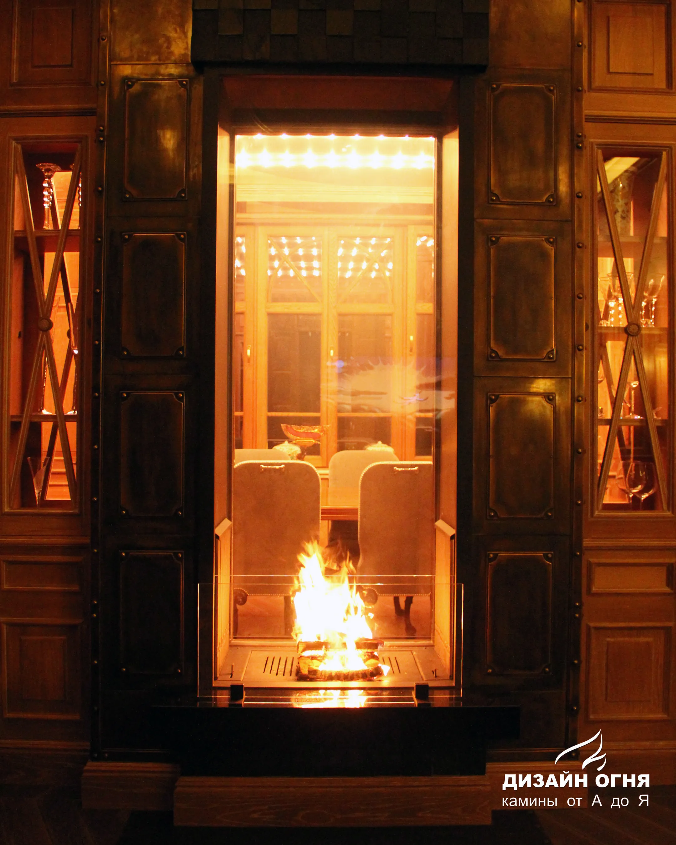Голландский завод Boley способен реализовать любые дизайнерские задумки. Вот как может выглядеть двухсторонний камин разделяющий зону гостиной и столовой.