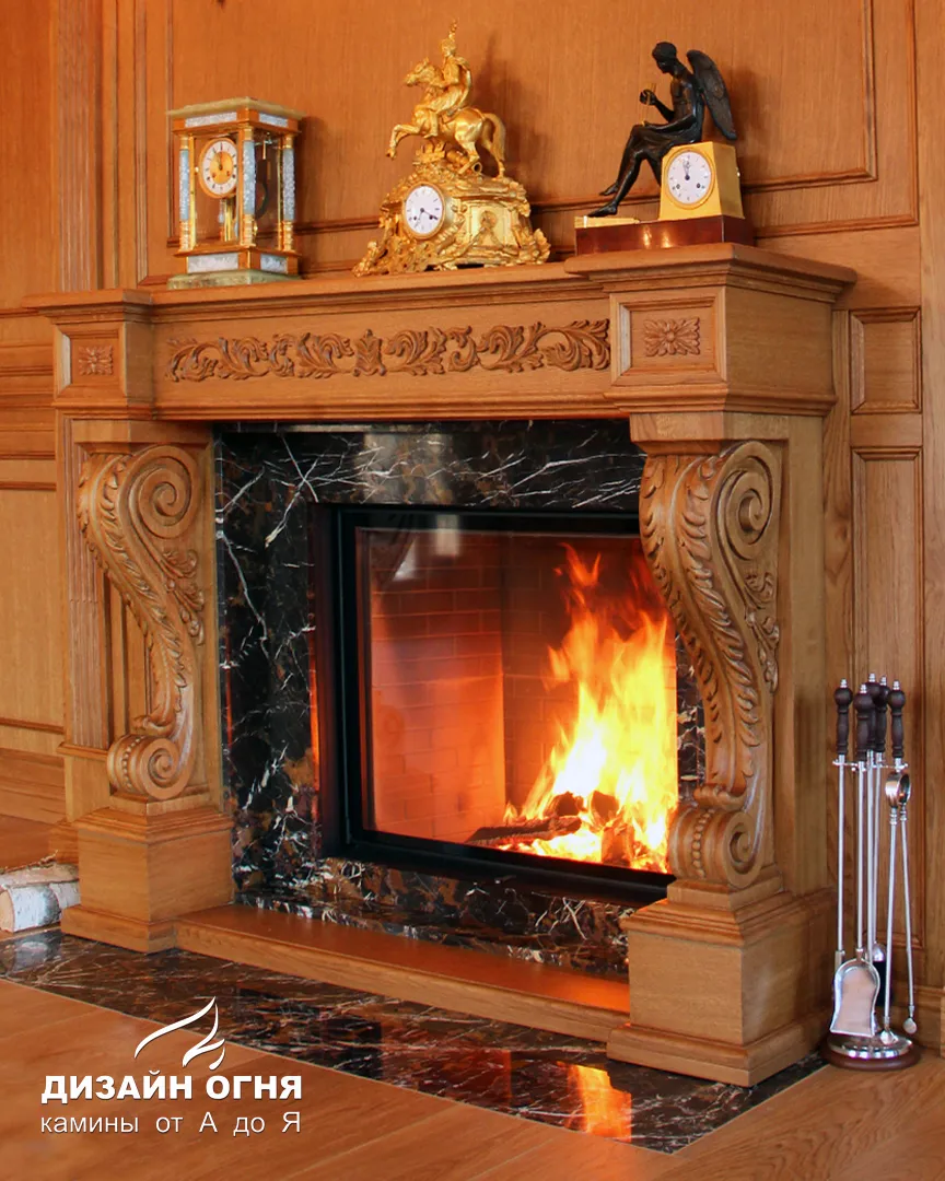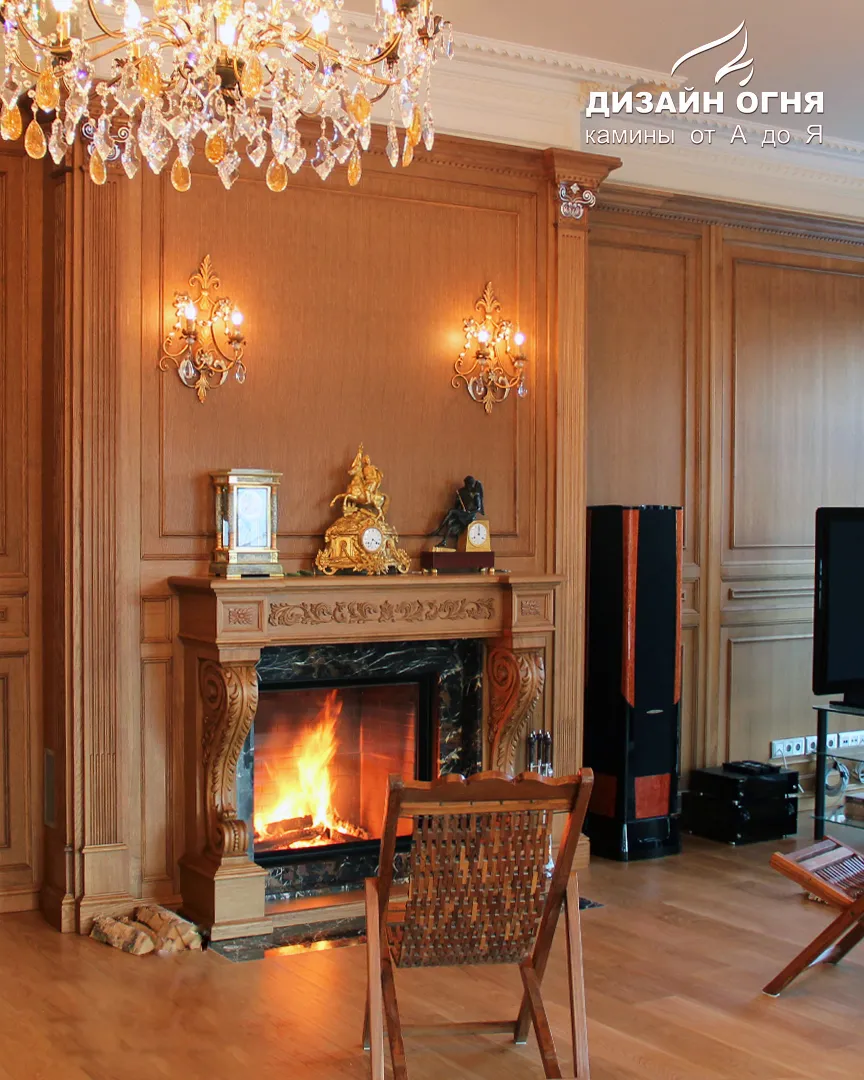Получился очень достойный камин. Brunner Stil-Kamin 62/76 - породистый баварец. А деревянный портал изготовила небольшая семейная мануфактура из солнечной Италии.