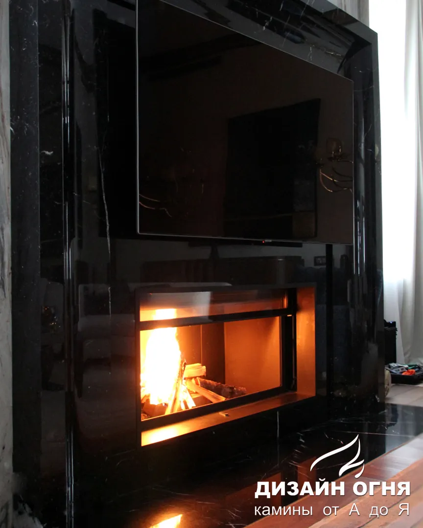 Портал выполнен из глыбы мрамора - Nero Marquina.