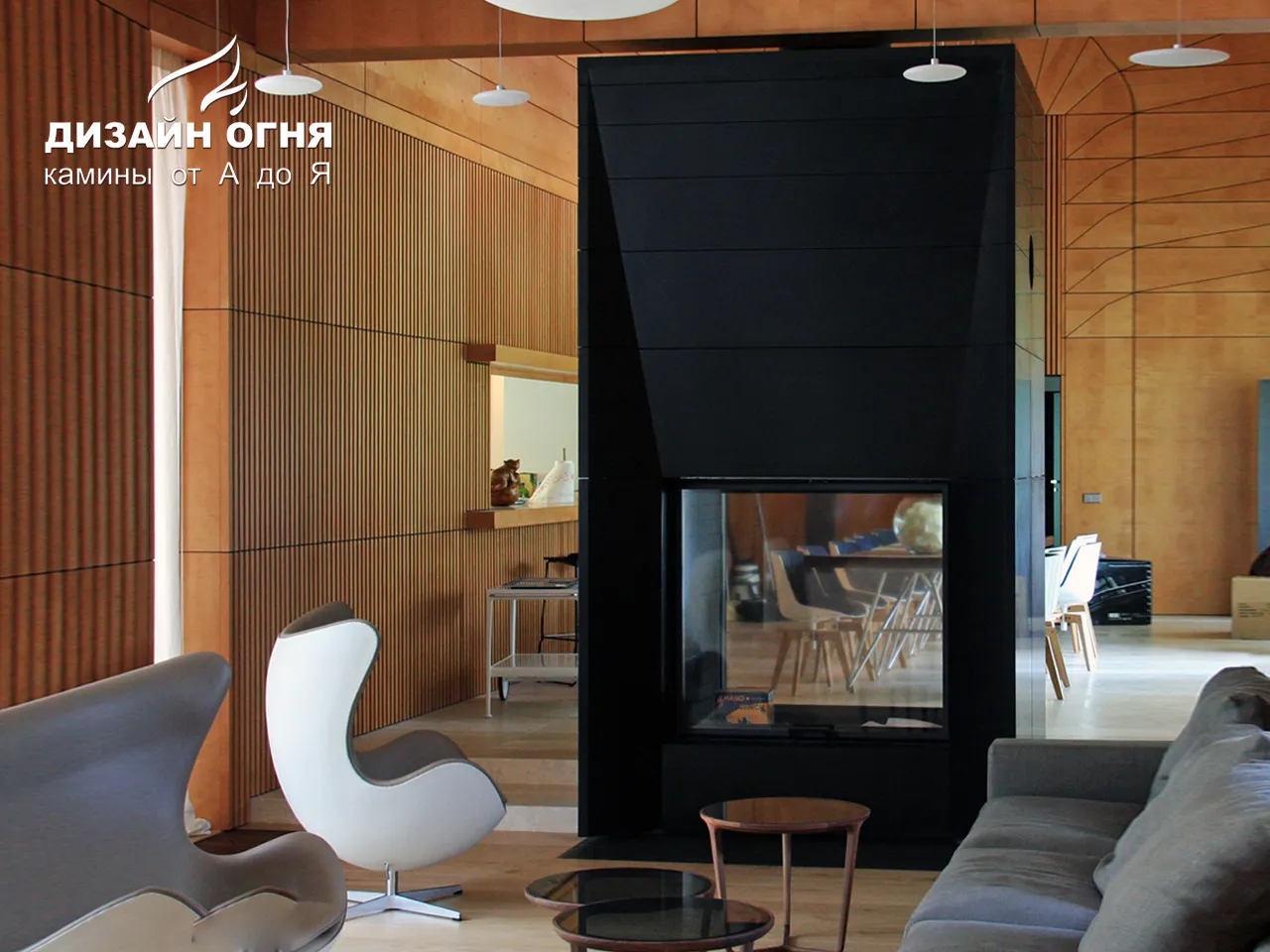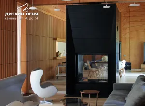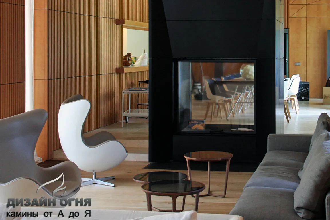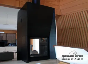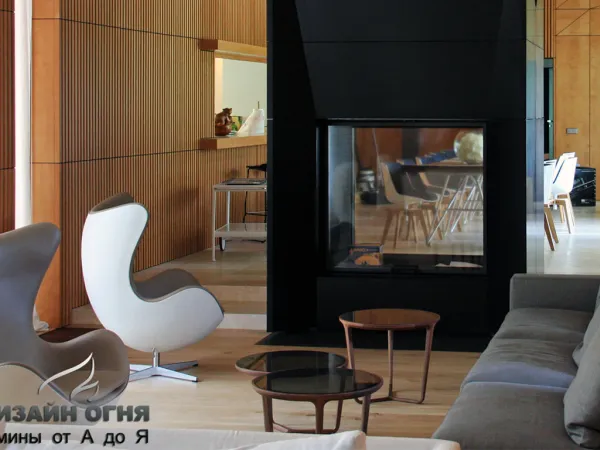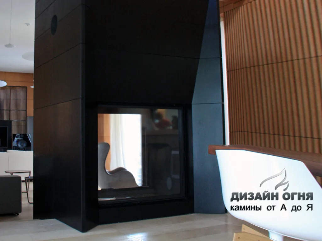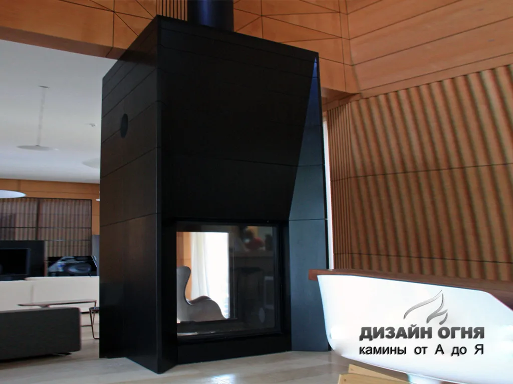 Камин с индивидуальной туннельной топкой. Облицовка - гранит.