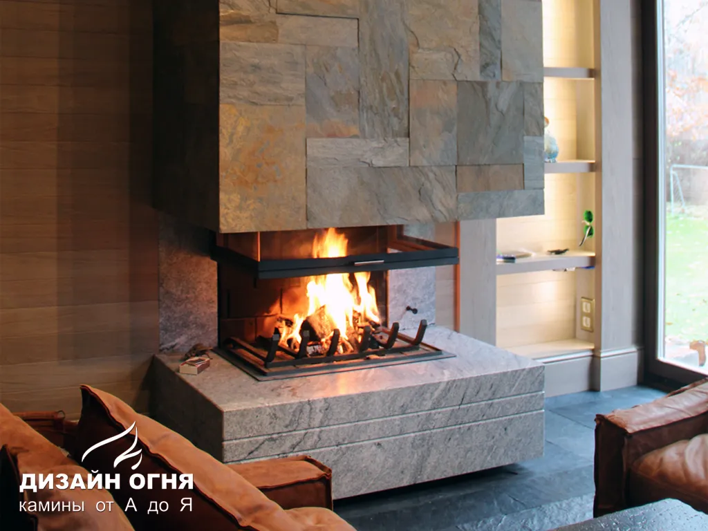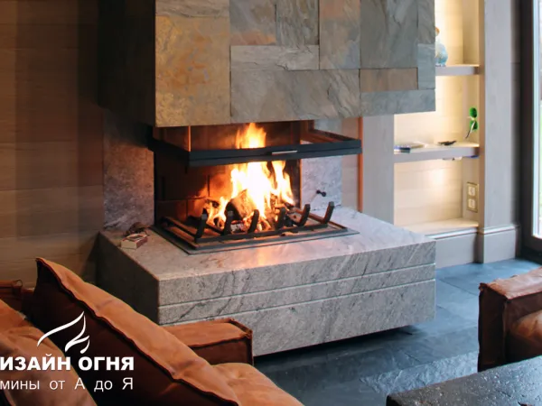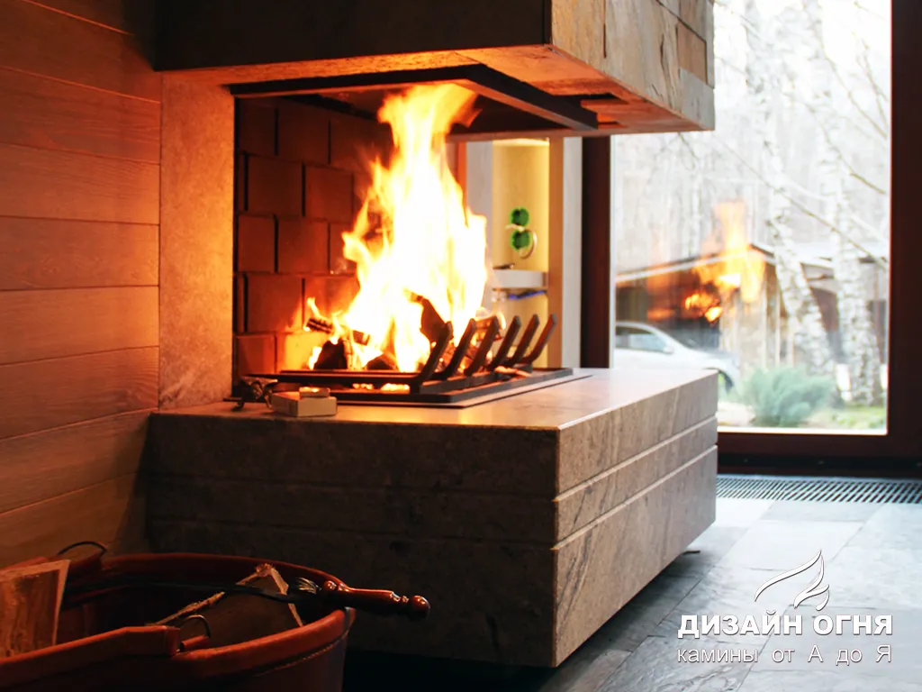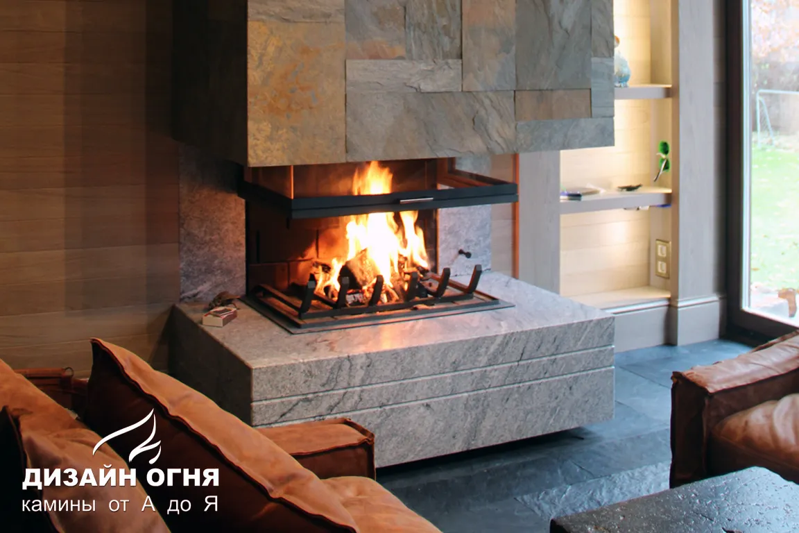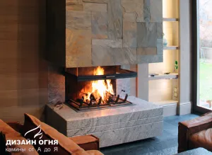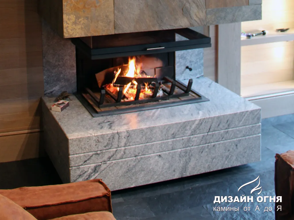 Индивидуальный проект камина, где очаг может быть открытым или закрытым.